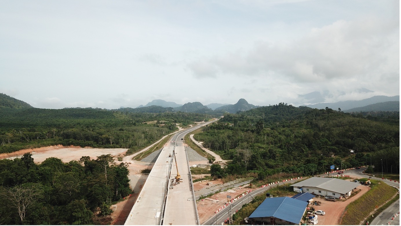 Pembinaan melibatkan kawasan GUA MUSANG,KELANTAN hingga KG RELONG, PAHANG SEKSYEN 3E1 : MENTARA KE MERAPOH yang diperincikan dengan TARIKH MILIK TAPAK pada 19 September 2016 dan TARIKH SIAP ASALÂ pada 15 September 2019 serta TARIKH SIAP SEMASA pada 18 MAC 2020 yang meneraju perbelajaan bagi KOS KONTRAK ASAL sebanyak RM104,940,000.00 kepada KOS KONTRAK SEMASA bernilai RM 94,059,190.47.